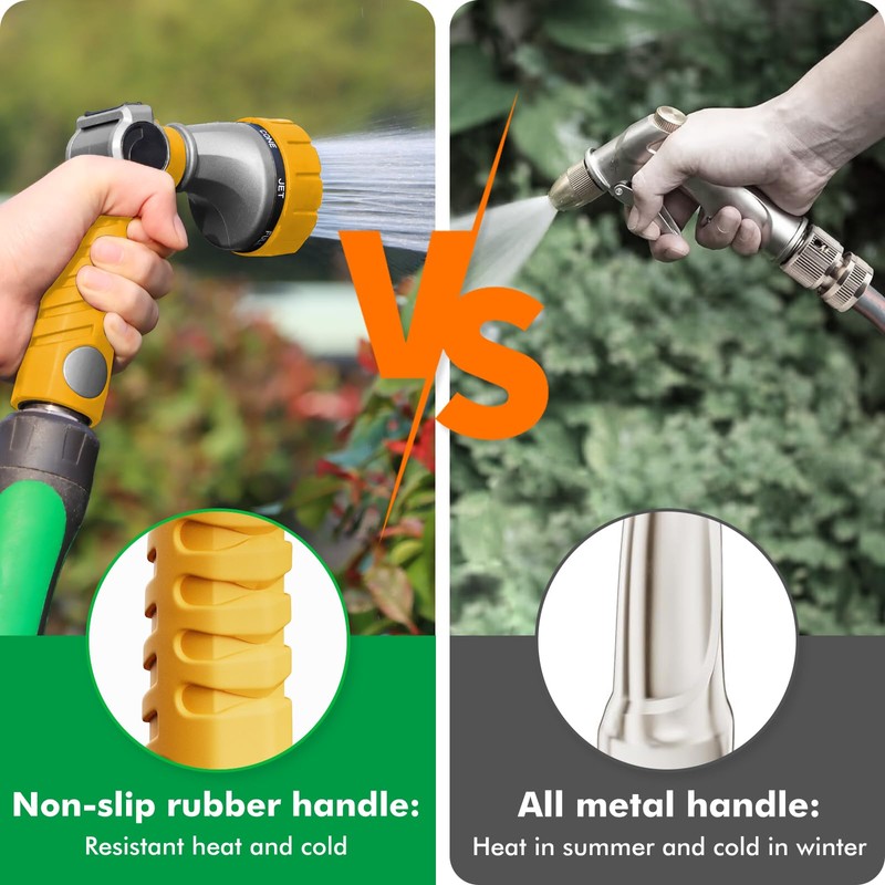 - ERGONOMIC DESIGN: The hose nozzle handle coated with the soft TPU rubber. This non-slip rubber handle, resistant heat and cold, hassle-free to use in summer and winter. You’ll always feel comfortable and forget hand fatigue when you are watering.
