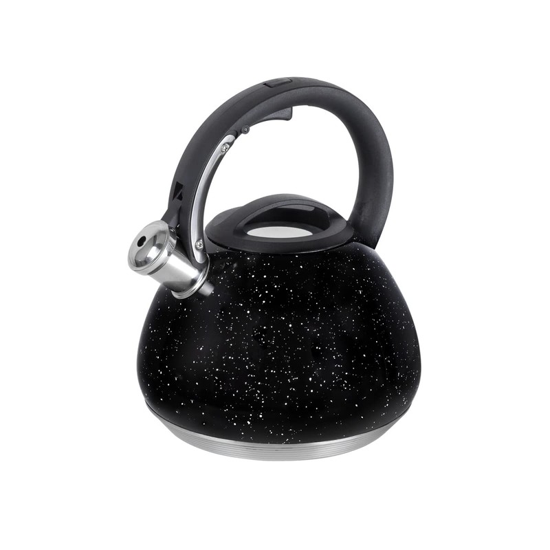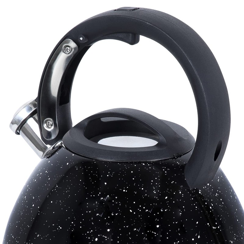 RESTO Whistling Kettle with Marble Surface Coating - Kettle with Multilayer Capsule Base - Pipe Kettle 2.7 Litre for All Hobs / (Black)