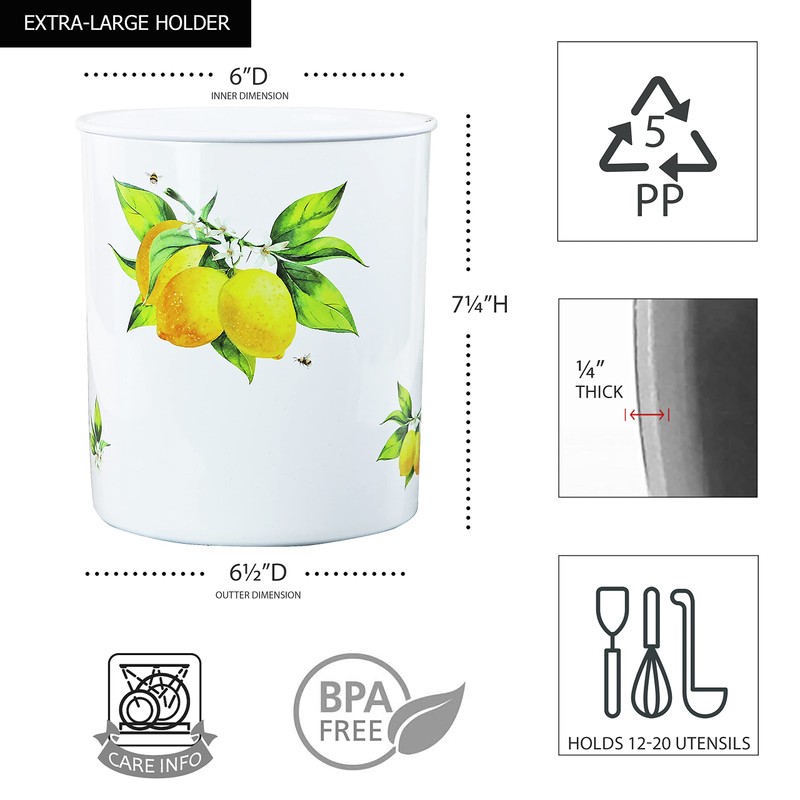 Reston Lloyd Multipurpose Crock Organize All Kinds of Utensils & Kitchen Tools, Extra Large Holder, Fresh Lemons