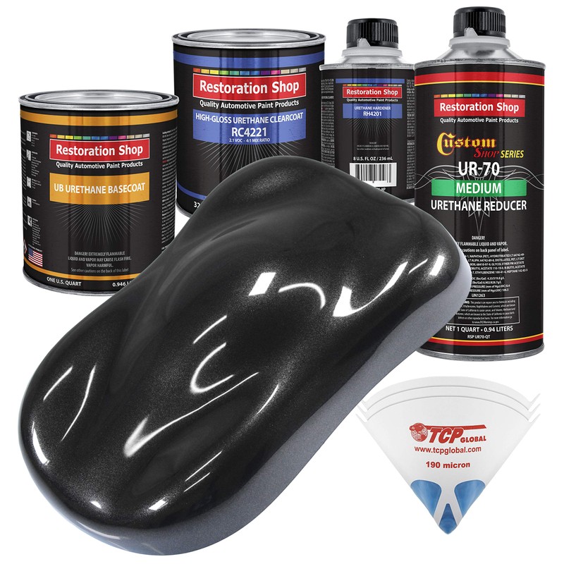 Restoration Shop - Black Sparkle Metallic Urethane Basecoat with Clearcoat Auto Paint - Complete Medium Quart Paint Kit - Professional High Gloss Automotive, Car, Truck Refinish Coating