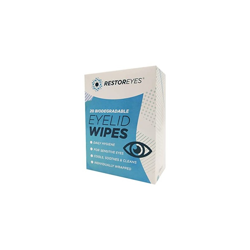 Restoreyes Biodegradable Eyelid Wipes – Eco-Friendly, Hypoallergenic Cleansing for Sensitive Eyes, Blepharitis Relief, and Daily Eyelid Hygiene Maintain optimal eyelid hygiene with Restoreyes Biodegradable Eyelid Wipes, designed to provide gentle and effective cleansing for sensitive eyes. Our eco-friendly wipes are perfect for daily use, ensuring your eyes remain comfortable and healthy. Key Features: Biodegradable & Eco-Friendly: Committed to environmental sustainability, our wipes are made from biodegradable materials, reducing environmental impact without compromising quality.​ Hypoallergenic Formula: Specially formulated to be gentle on sensitive eyes, our wipes are free from harsh chemicals and preservatives, minimizing the risk of irritation.​ Invision Optometry Effective Against Blepharitis: Regular use helps in managing blepharitis symptoms by removing debris, oil, and makeup residue from the eyelids and lashes, promoting healthier eyes.​ Pre-Moistened & Rinse-Free: Each wipe is pre-moistened with a soothing solution, eliminating the need for rinsing and making it convenient for use at home or on-the-go.​ Individually Wrapped: For hygiene and convenience, each wipe is individually packaged, ensuring freshness and ease of use wherever you are