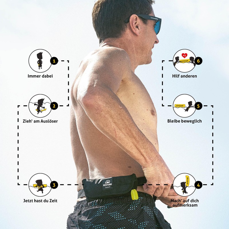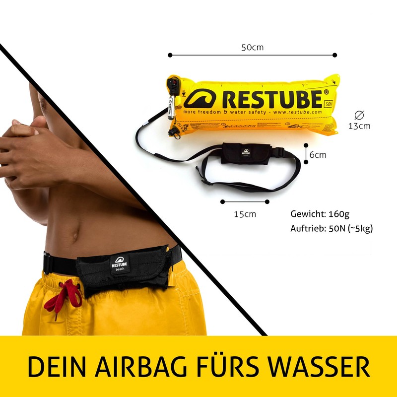 • DER Restube FÜR FAMILIENSTRANDTAGE - Der Restube beach ist kleiner als andere Restube Modelle - er hat einen Auftrieb von 50N / 5kg, was perfekt für eine Person in Badekleidung und im flachen Wasser ist. This unique instant inflatable rescue buoy is suitable for all body types and keeps your head comfortably afloat.