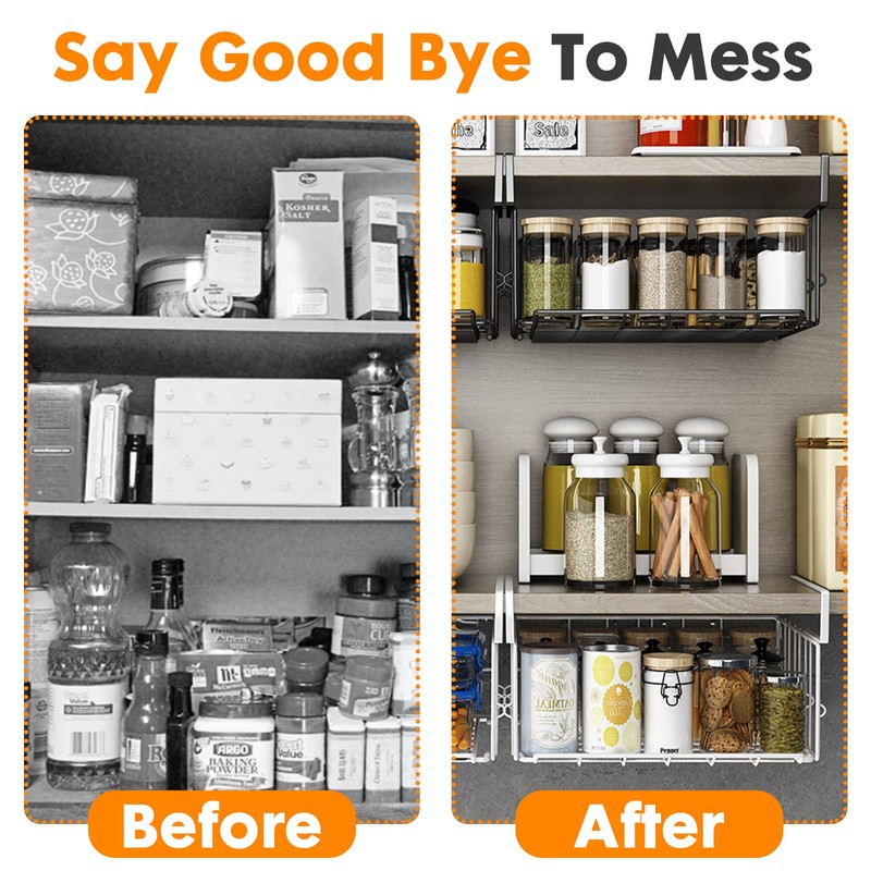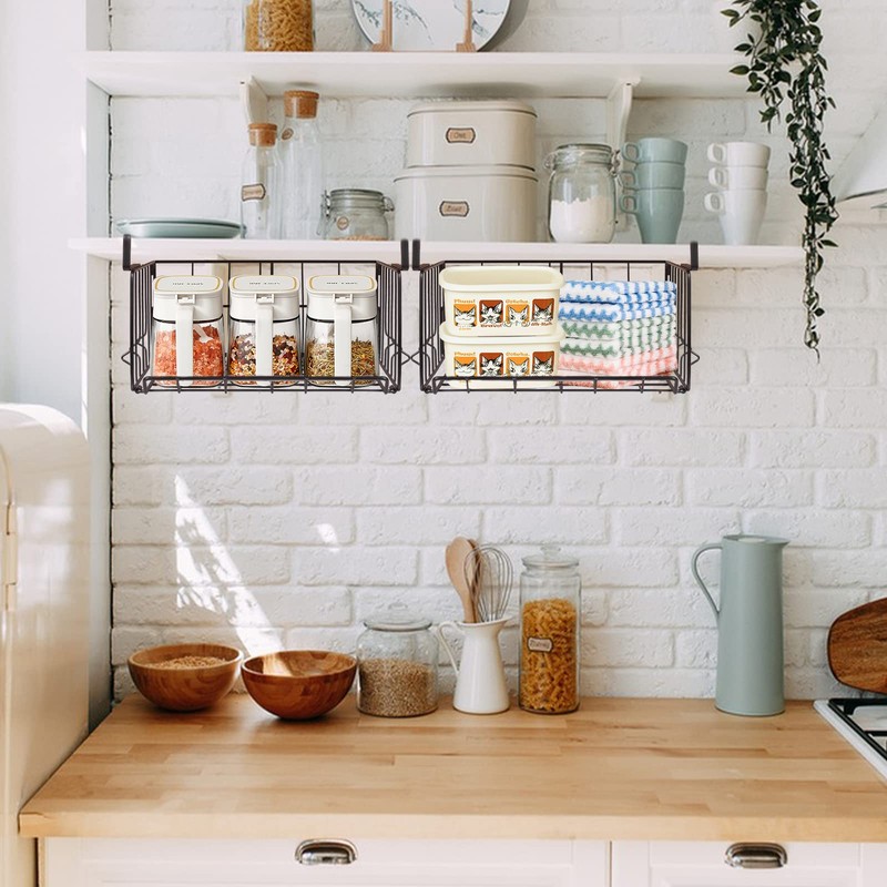 - 【Maximize Space】 Our 2-pack under cabinet shelf basket organizers efficiently utilize the unused space beneath your cabinets, providing additional storage for kitchen essentials and maximizing your cabinet space