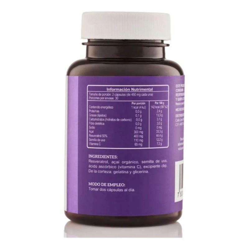 Resveratrol 100% Vegano Vitamina C Semilla Uva Acai 60 Cáps. Sin Sabor