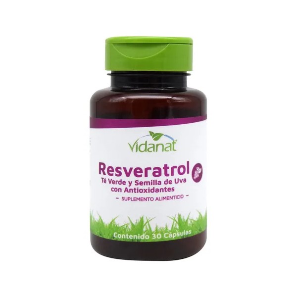 Descubre los beneficios del 'Resveratrol Té Verde Semilla de Uva 30 caps Vidanat', un suplemento diseñado para potenciar tu bienestar. Cada cápsula contiene una combinación poderosa de Resveratrol, Té Verde y Semilla de Uva, ingredientes reconocidos por sus propiedades antioxidantes. Este producto es ideal para quienes buscan un apoyo nutricional en su día a día. Su fórmula incluye 150 mg de extracto de Resveratrol al 50%, 50 mg de Té Verde y 30 mg de Semilla de Uva por porción, lo que lo convierte en un aliado perfecto para tu salud. Además, es libre de gluten y no contiene lactosa, lo que lo hace apto para diversas dietas. Recuerda que este producto no es un medicamento y su consumo es responsabilidad de quien lo usa. Toma una cápsula después del desayuno y disfruta de sus beneficios. ¡Incorpora este suplemento a tu rutina y siente la diferencia!