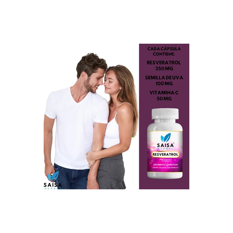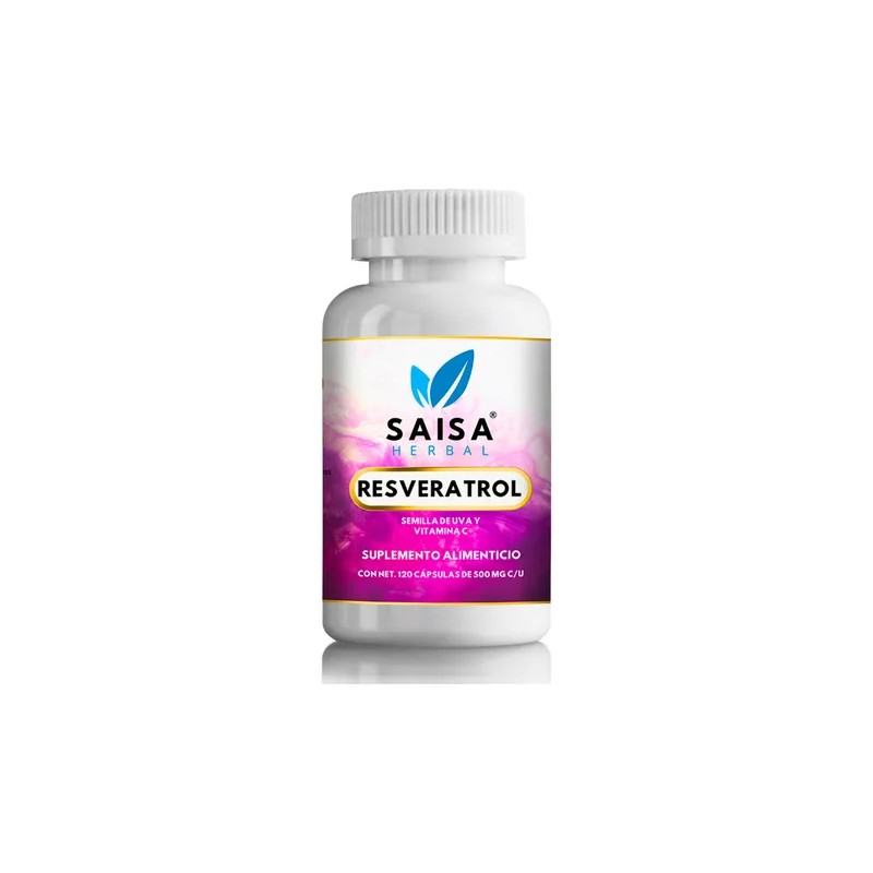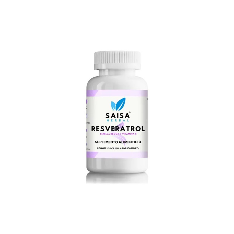 Resveratrol Con Semilla De Uva Y Vitamina C con 120 Cápsulas | Suplemento Alimenticio Polifenoles | Saisa Herbal Sin Sabor | Antioxidante, Mejora La Circulación, Antienvejecimiento, Salud Cognitiva