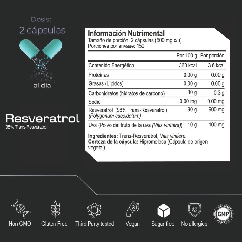 Resveratrol High Purity 98% Trans Resveratrol 1000mg Porcion
