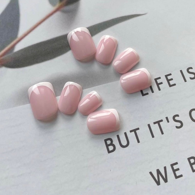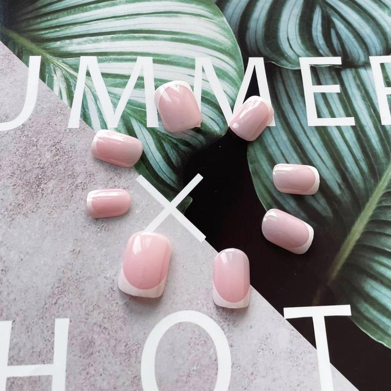 Resweky Französisch Quadrat Druck Auf Mittleren Nägeln Kurze Falsche Nägel Rosa Nackte Nägel Volle Abdeckung Acryl Gefälschte Nägel für Frauen
