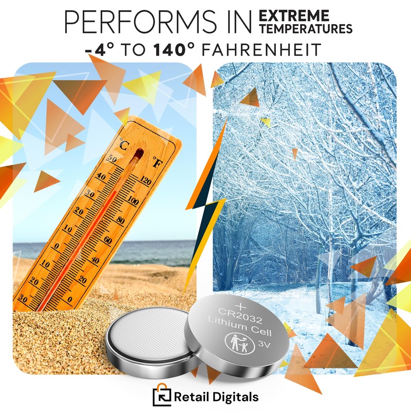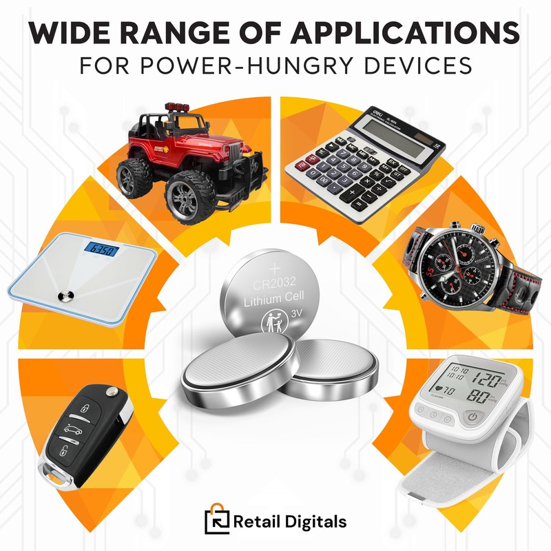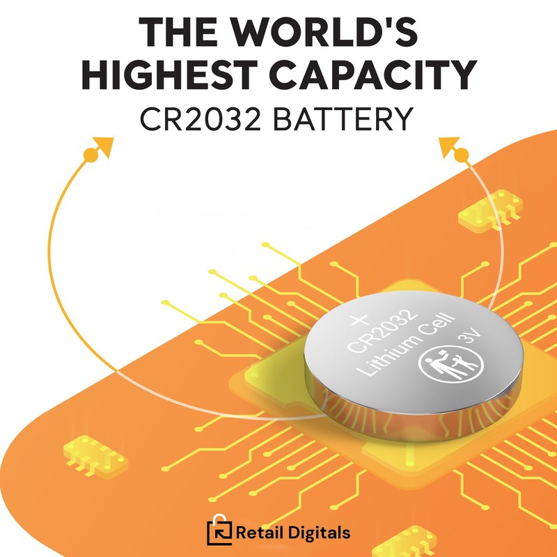 Retail Digitals CR2032 lithium coin batteries provide a dependable and long-lasting power solution for all your small electronics.