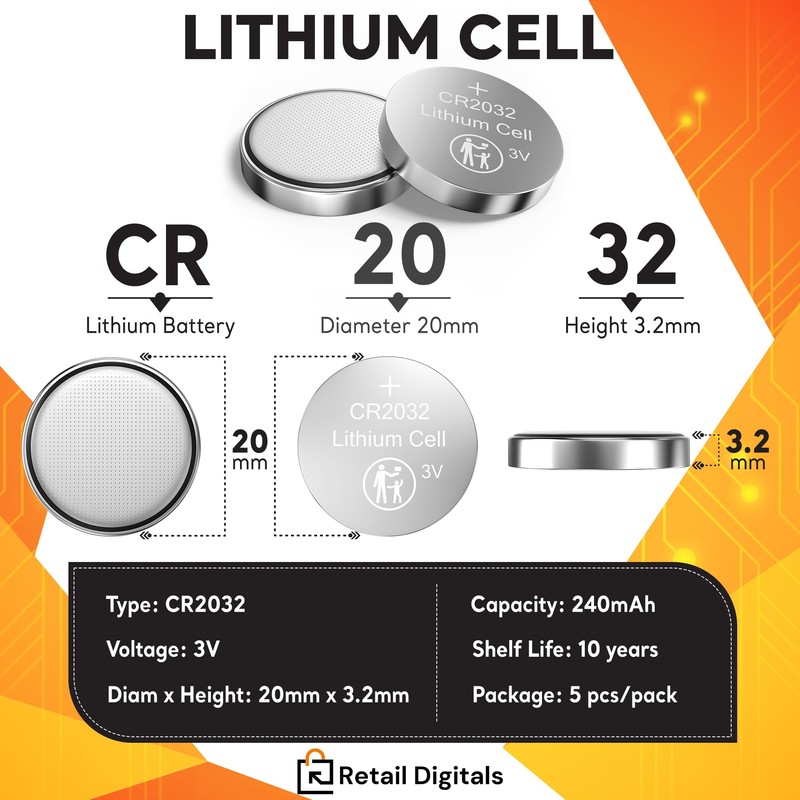 Retail Digitals CR2032 3V Premium Lithium Battery | Shelf Time 10 Years | 240...