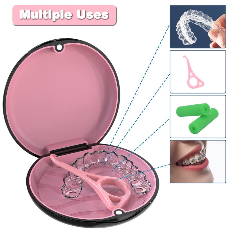 -Fit any need: retainer case, aligner case, night guard case, mouth guard case, denture case.