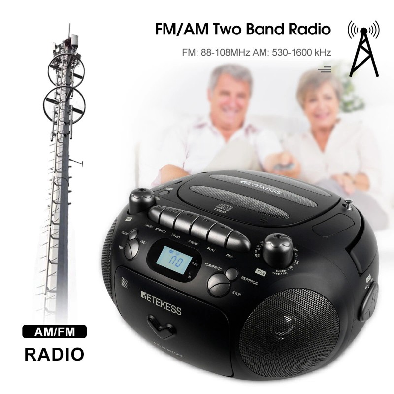 TR630 Portable AM/FM Radio CD/Cassette Tape Player Stereo Boombox Record Speaker