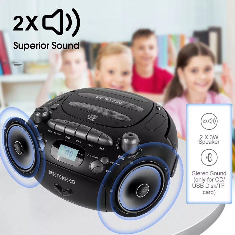 Easily transferring your favorite songs from CD or cassette to USB disk or TF card, as well as from CD, USB disk and TF card to cassette;