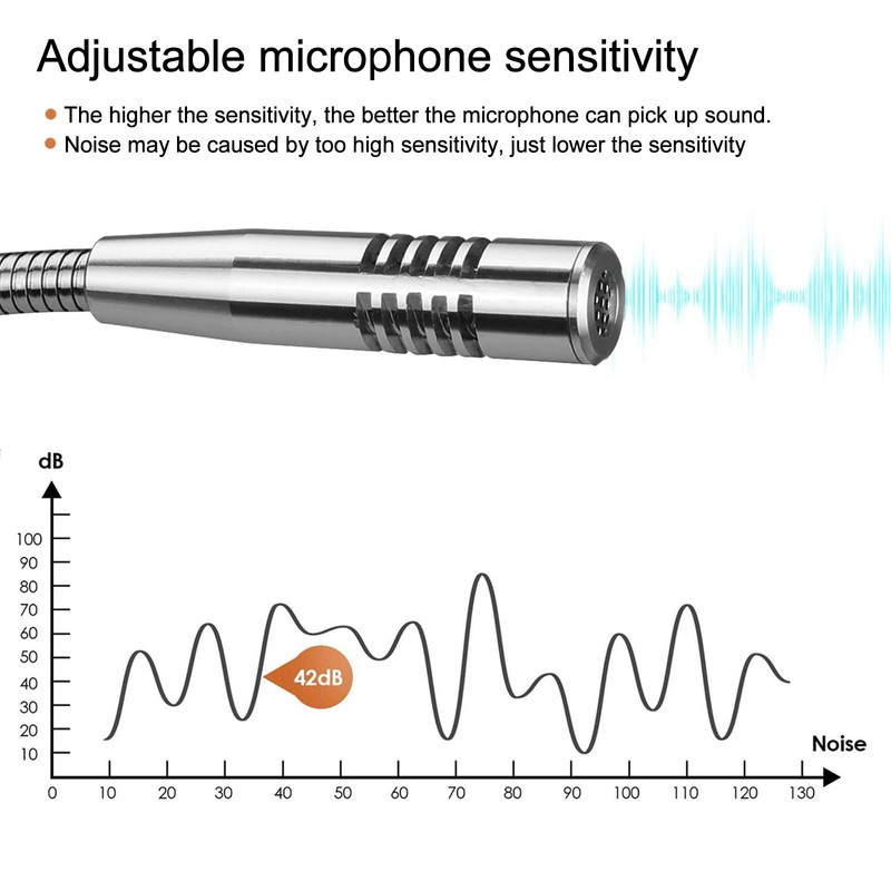 - Adjustable microphone sensitivity; adjust sensitivity according to environment; reduce noise and keep the sound clear and natural