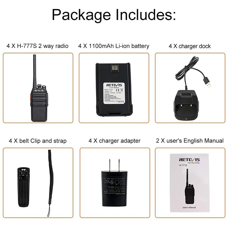 Retevis H-777S Two Way Radios Rechargeable, Walkie Talkies Long Range, 2 Way Radio, VOX Handsfree, Durable, for Worker Office Camping Hiking(4 Pack)