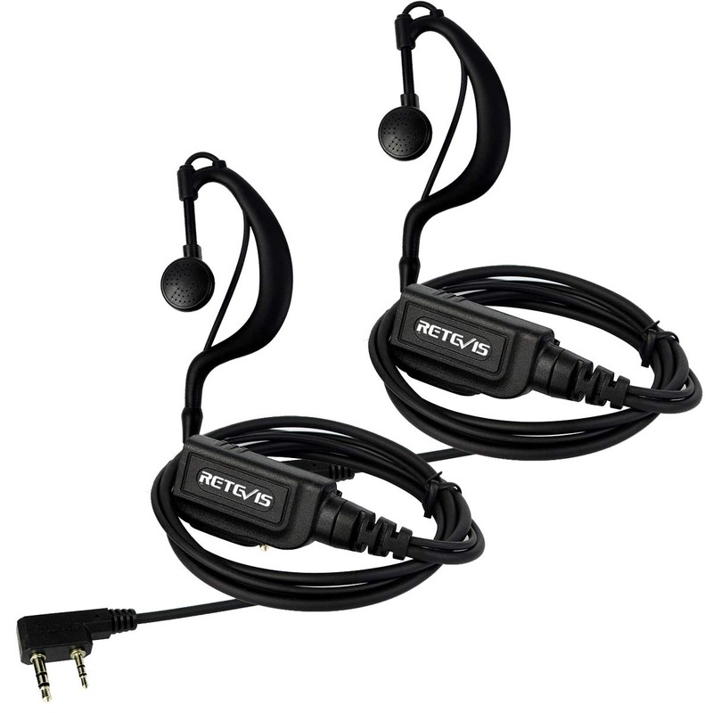 Retevis RT1 Earhook Walkie Talkie Earpiece with Mic 2 Pin, Double Cable RT22 H-777 RT21 RT68, Compatible with Pxton Baofeng Kenwood Walkie-Talkie, C-Type 2 Way Radio Earpiece(2 Pack)