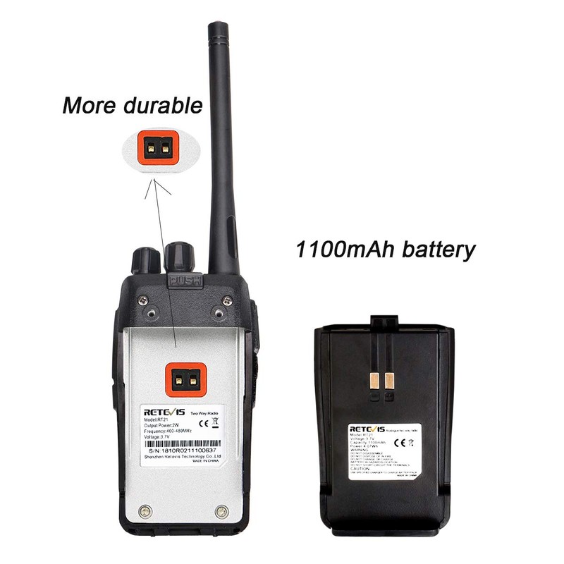 • Our walkie talkies is only FRS walkie talkies;the FCC ID is 2AAR8RETEVISRT21;our walkie talkies meet FCC rule part 95