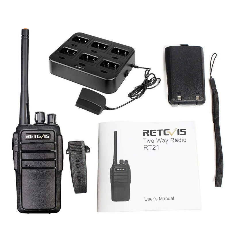 Retevis RT21 2 Way Radio Long Range, Walkie Talkies for Adults, Heavy Duty Rechargeable Two Way Radios with Six-Way Charger, for Manufacturing Education Government(6 Pack)