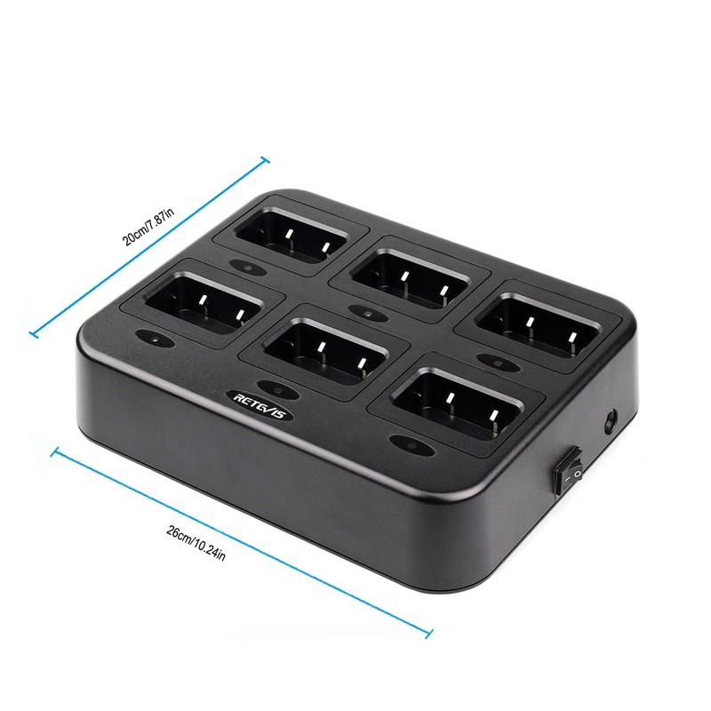 • Equipped with 6 way gang charger and charging 6 pack walkie talkies together to save time for your business
