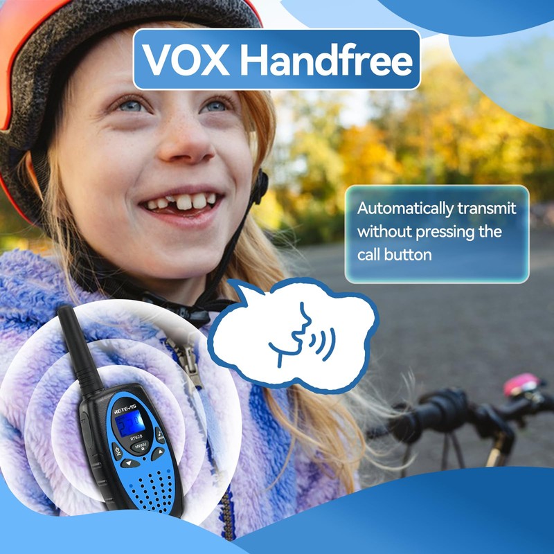 - VOX hands-free; walkie talkies for boys girls let them talk with parents or friends easily; they won't need to hold the walkie talkie all the time; play and enjoy the pleasure