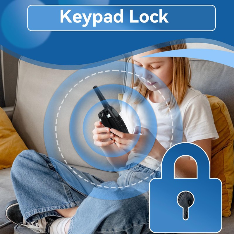 - Walkie talkie with screen; walkie talkie is equipped with an LCD display; which helps kids know the battery power easily day and night
