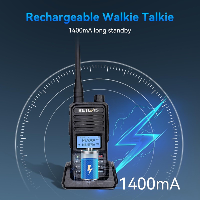 - Two way radio rechargeable for adults; 1400 mAh large battery; up to 3 days standby time; normal use time exceeds 8 hours; automatic power saving; meeting daily needs