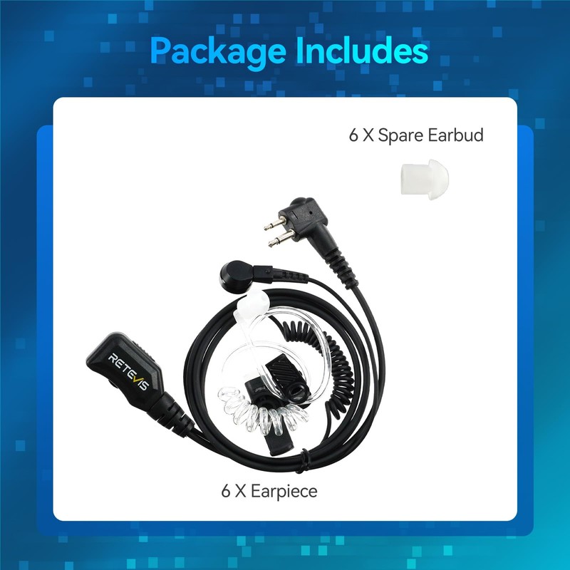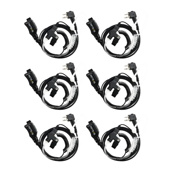 Retevis Walkie-talkie Earpiece with Mic,Covert Air Tube,Volume Adjustable,Compatible with Motorola CP100 CP100d CP200 CP200d GP300 GP2000 Mag One Two Way Radio,Coil Design,2 Way Radio Earpiece(6 Pack)