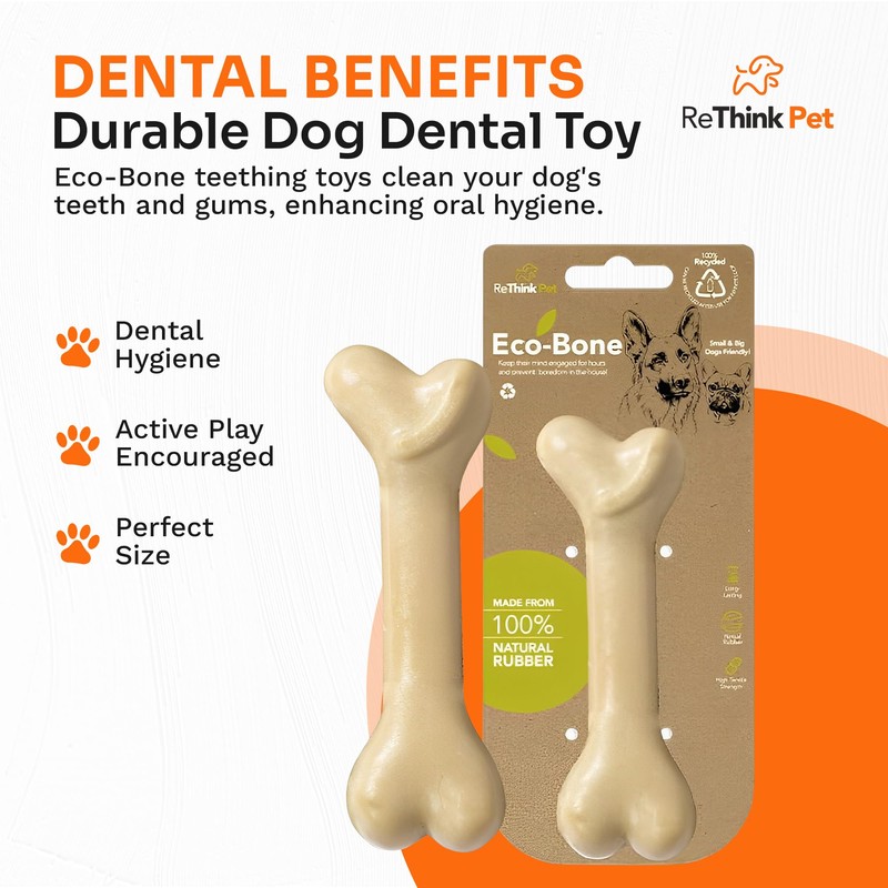 ReThink Pet Eco-Bone Dog Chew Bones, Natural Rubber Dog Bone Toy, Recycled Teething Dog Toys for Boredom, Long-Lasting and Durable Dog Chew Toys for Boredom