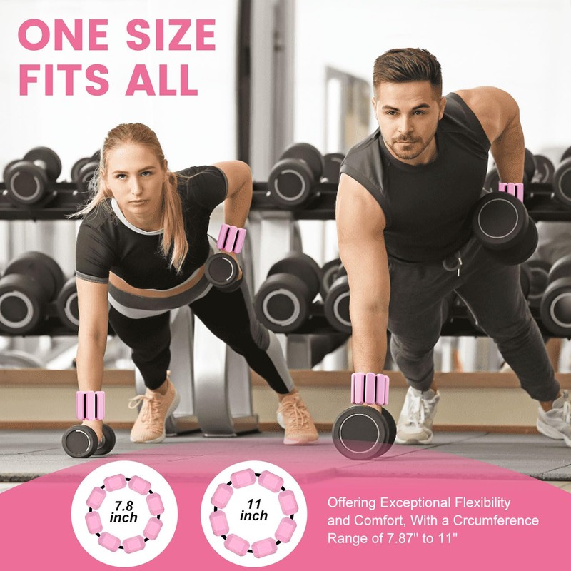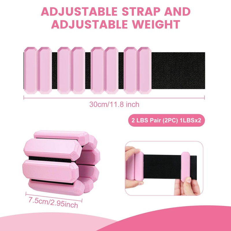 - 【Wrist Weights Bracelets】Set include 2 adjustable silicone weight bracelets, the wrist weight lenght x wide size are 29CM/11.4IN x 7.5CM/2.9IN, you can easily customize the fit to match your wrist or ankle size, 1lb weight for each one. Each strip load can move freely, allowing you to adjust the weight of bracelets, you can remove a section load to create a better fit, make you more comfortable to enjoy sport.
