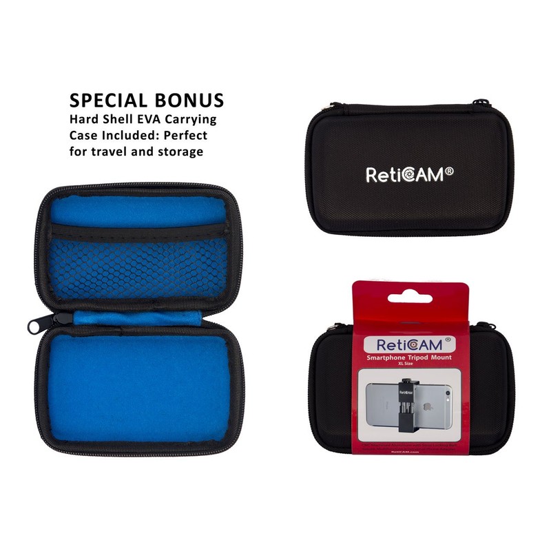 • XL size fits any smartphone from 2.75" to 3.6" wide, with or without a case: Compatible with Apple iPhone 6 Plus and 6S Plus, Samsung Note 2/3/4/5, HTC One X, Google Nexus 6/6P, Nokia Lumia 920/1020/1520, Sony Xperia Z and many other brands and models. (For smaller phones including iPhone 3/4/4S/5/5C/5S/6, please choose RetiCAM Smartphone Tripod Mount - Standard Size, ASIN: B00FS5L9D4).