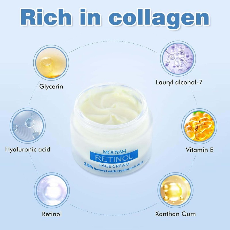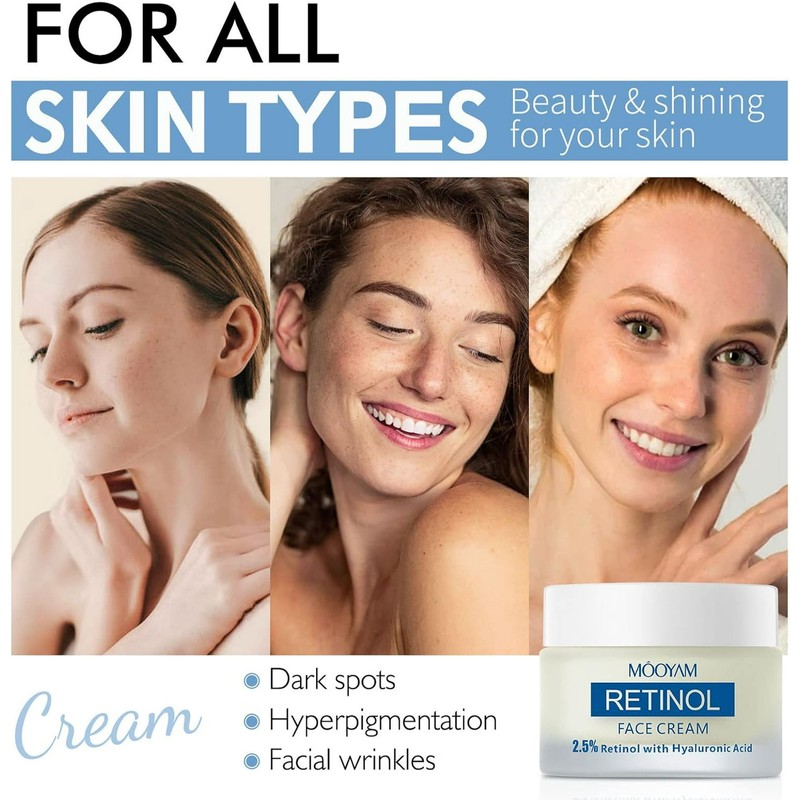 - 【REDUCE WRINKLES & ANTI-AGING】: This retinol moisturizer cream will work miracles on your skin. Experience fine line and wrinkle reduction. Its powerful 2.5 % Active Retinol and Hyaluronic Acid combination ensures a younger looking skin.