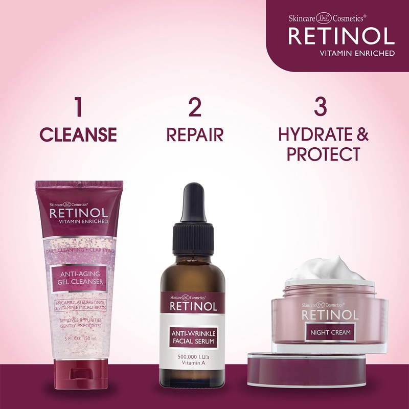 - RETINOL ANTI-AGING GEL CLEANSER – Washes Away Makeup & Impurities Trapped in Your Pores for a Fresh, Clean Face with the Added Skin Renewing Benefits of Retinol
