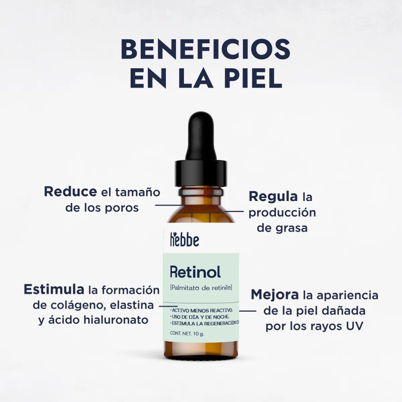 Retinol Vitamina A Liquida, Palmitato De Retinilo Puro, Tipo de piel Sensible, Hebbe 10ml