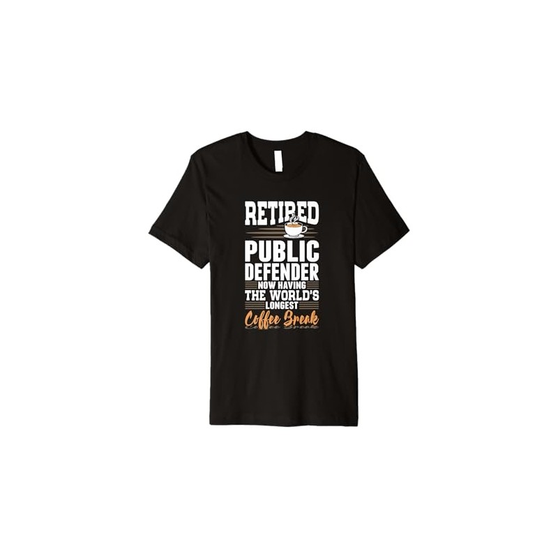 - Retired Public Defender World's Longest Coffee Break! Are you retired Public Defender and happy not working anymore? Funny retirement outfit for Public Defender to show that you enjoy to be retired.