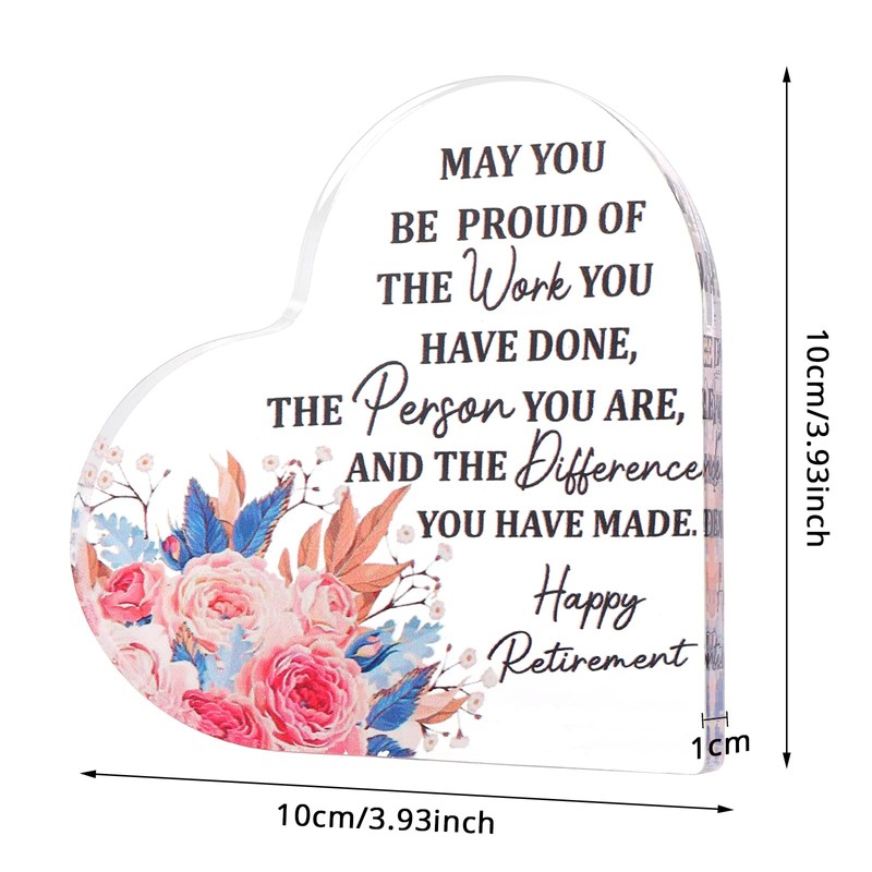 - Multiple Uses: The retirement heart-shaped acrylic plaque can be as desk decorations or placed on tables, shelves, fireplaces and mantels. Suitable for many occasions, such as work anniversaries, retirement days, Christmas and various other holidays