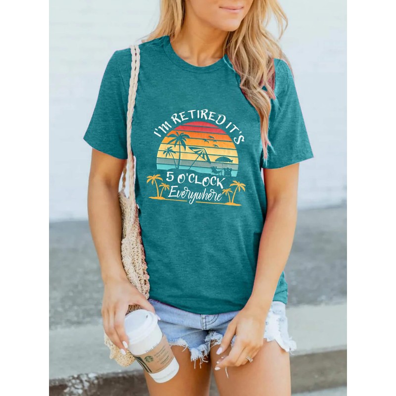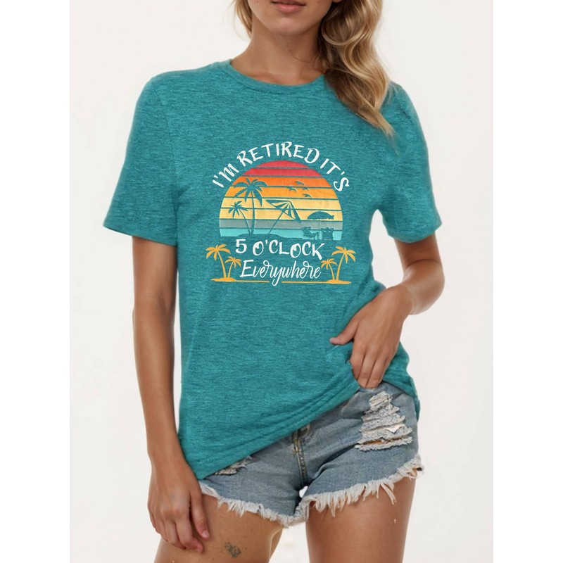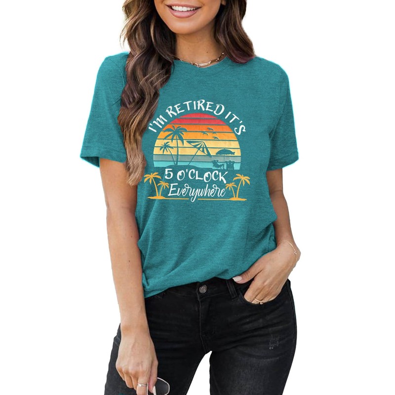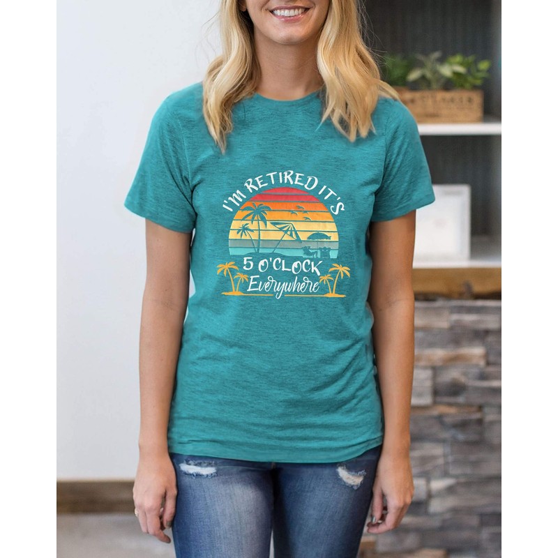 Retirement Shirts for Women I'm Retired It's 5 O'Clock Everywhere Tshirts Funny Retirement Gift Cyan XL