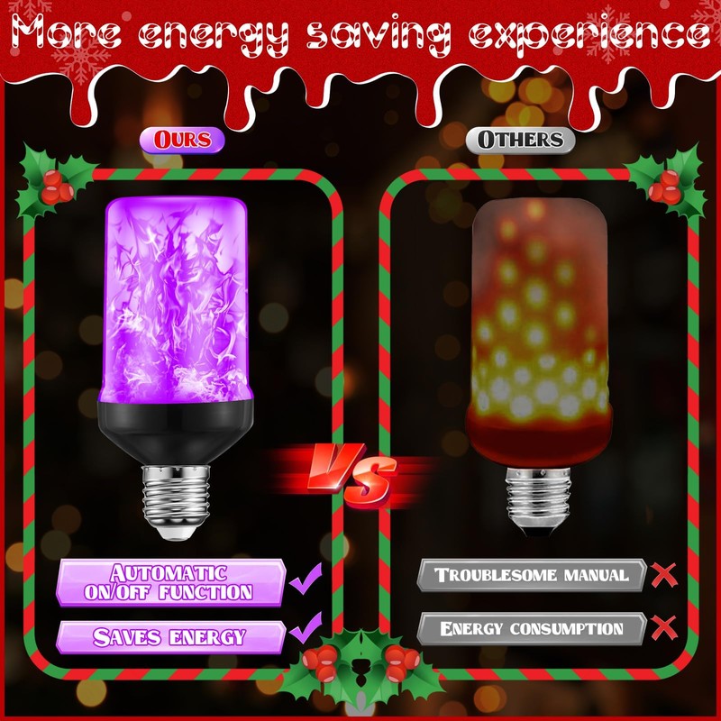 - 🎉[Wide Application]Flame light bulbs for outdoor are perfect for porches and patios, as their flickering effect can instantly transform the atmosphere, making them suitable for various occasions like Christmas, Halloween, and birthday parties. They are not only great for home decor but also enhance the ambiance of living rooms, bars, gardens, restaurants, cafes, and wedding venues