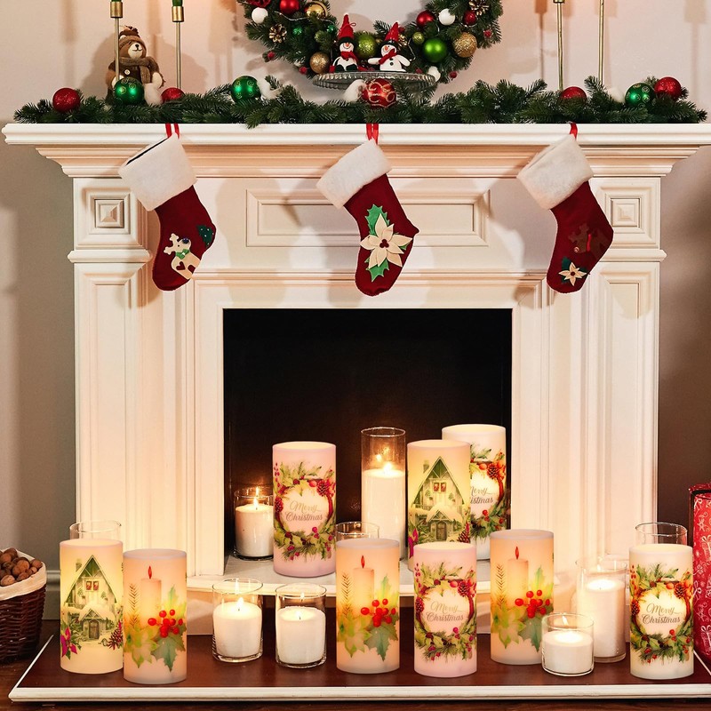 - Nice Christmas Decoration: with charming garlands, berries, pine cones and other patterns, this LED Christmas candle is the ideal addition to your holiday decor; The words add a warm, festive touch that will enhance your Christmas celebration