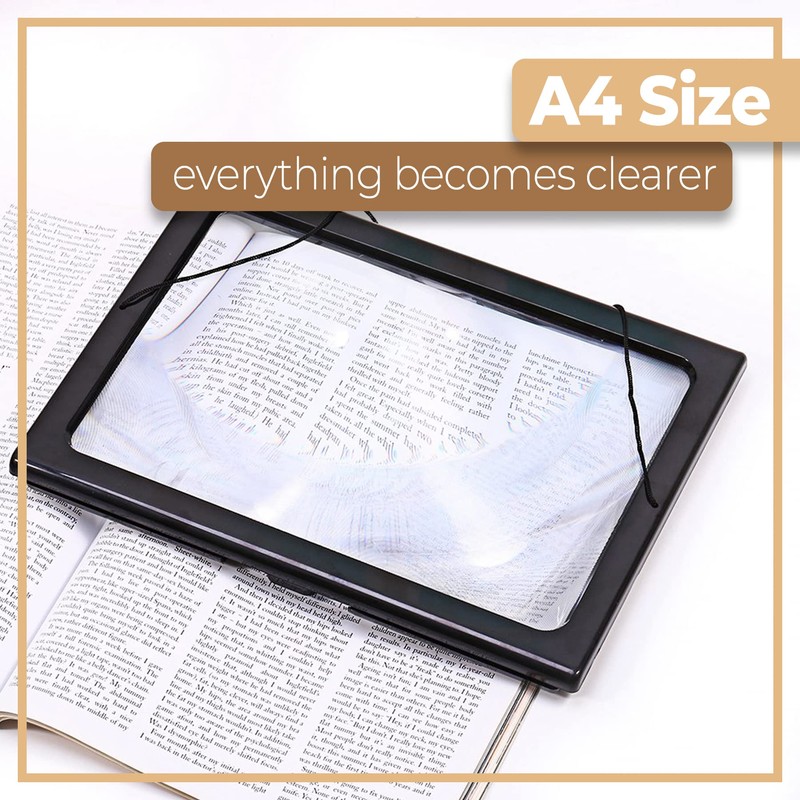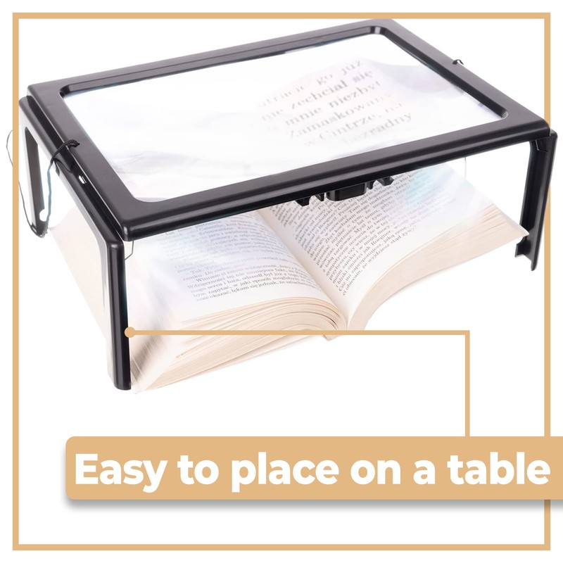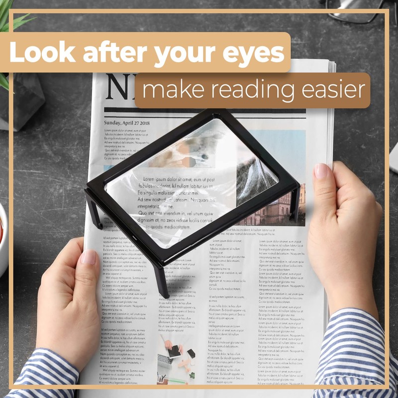- Large Magnification Range - The magnifying lens is 16.2 cm x 23.8 cm and makes reading much easier. Thanks to its size, you can clearly see multiple lines of text instead of just one, and you no longer have to move the magnifying glass energetically across the page to keep up with your eyes. The reading aid is equipped with 4 comfortable legs that allow you to stand up and read hands free.
