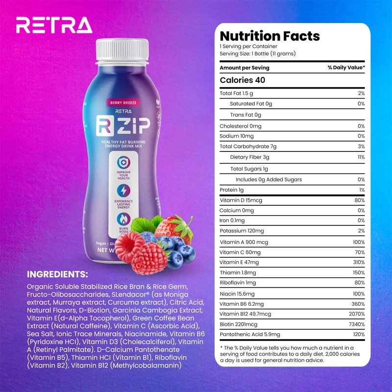 Improve your health, experience lasting energy, and burn body fat with R:ZIP, a powerful combination of Slendacor and Stabilized Rice Bran.