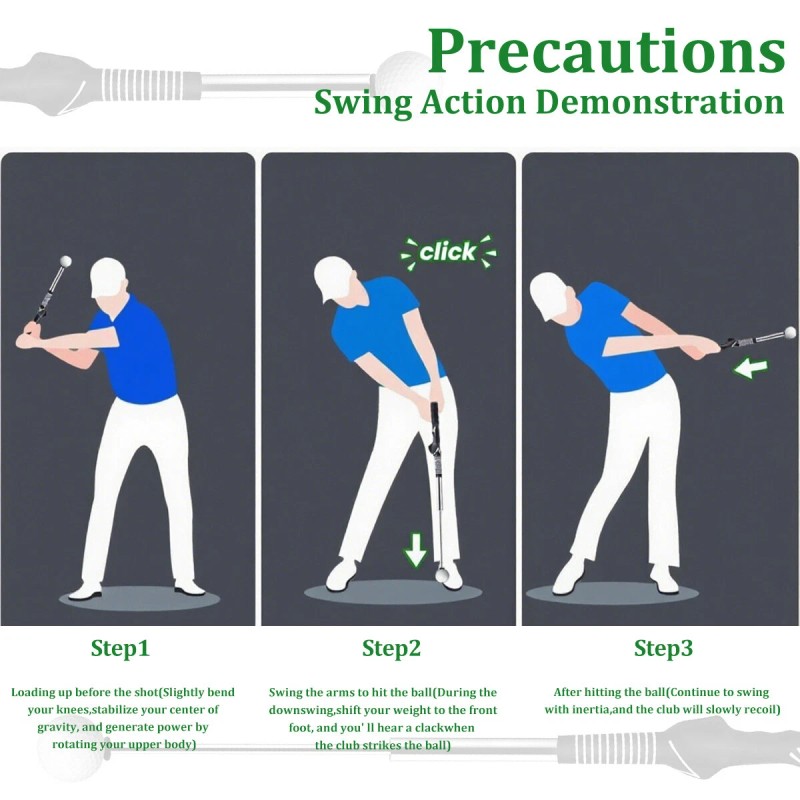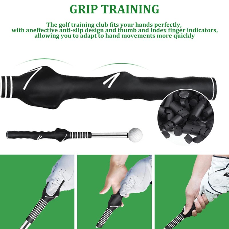 【Retractable Golf Swing Trainer】Our golf swing trainer with retractable and sound design provides a realistic swing feeling.   When you swing down, the club will extend and make a "click" sound to determine whether your swing is standard, which can improve your swing rhythm,balance, flexibility, speed and power.