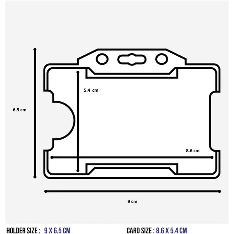 - Badge holder size: external size (outside) dimensions: 9 x 6.5cm. internal dimensions 8.6 x 5.4 cm (max insert size) fits cr80 credit sized cards *card inserts are not included