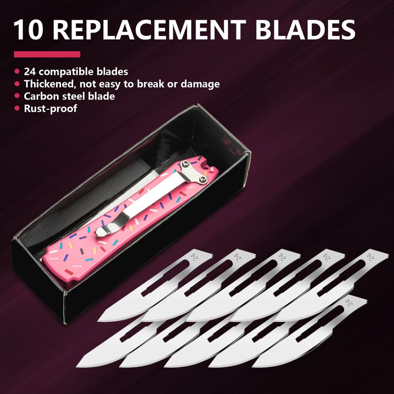 • BLADE REPLACEABLE:The replaceable blade knife (scalpel knives) comes with 10 surgical blades, which can be easily disassembled and tightly fixed on a rigid blade holder. Its pocket clip ensures easy carry in your or backpack