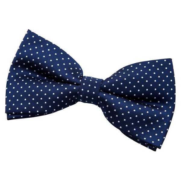 Retreez Modern Mini Polka Dots Woven Microfiber Pre-tied Bow Tie (5") - Navy Blue with White Dots