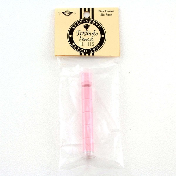 Retro 51 Pk/6 Retro 51 REF13-E Eraser Refills for Tornado Pencils, Pink