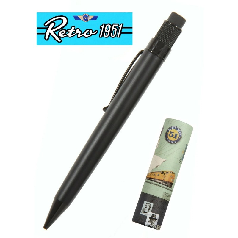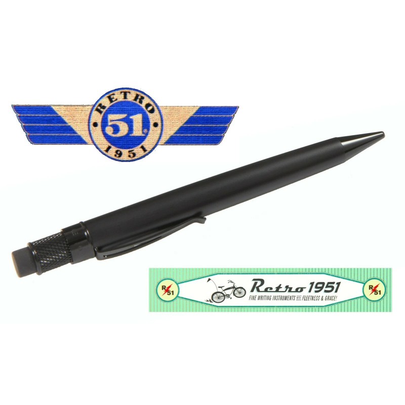 This Listing is for one new Retro 51 Mechanical Pencil as shown. This one is called Stealth and features the matte black look of the military's stealth plains on the barrel and trim. This is a very popular look. The pencil is a top twist action lead advance. The Stealth pencil features 1.15mm lead and comes with a refill pack of 12 extra leads and 6 extra black erasers. This pencil comes in a verity of 1951 era tubes and makes a great place to store your pencil or use it with the top part of the tube off as a stand for the pencil on your desk. Everything about the Stealth is top shelf. Get one for your self.