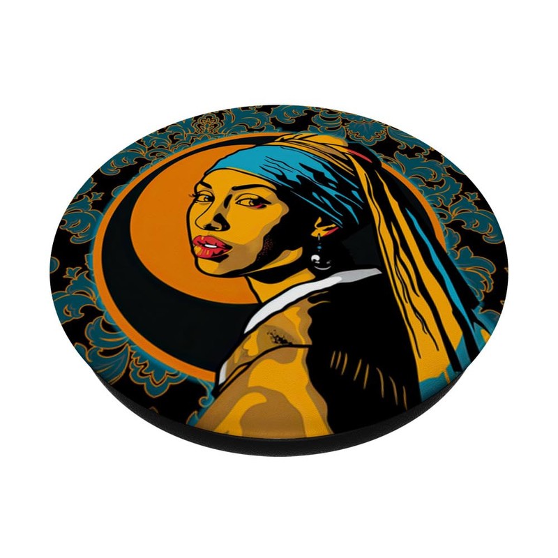 Retro 80s 90s girl with the pearl earring artistic filigree PopSockets Standa...