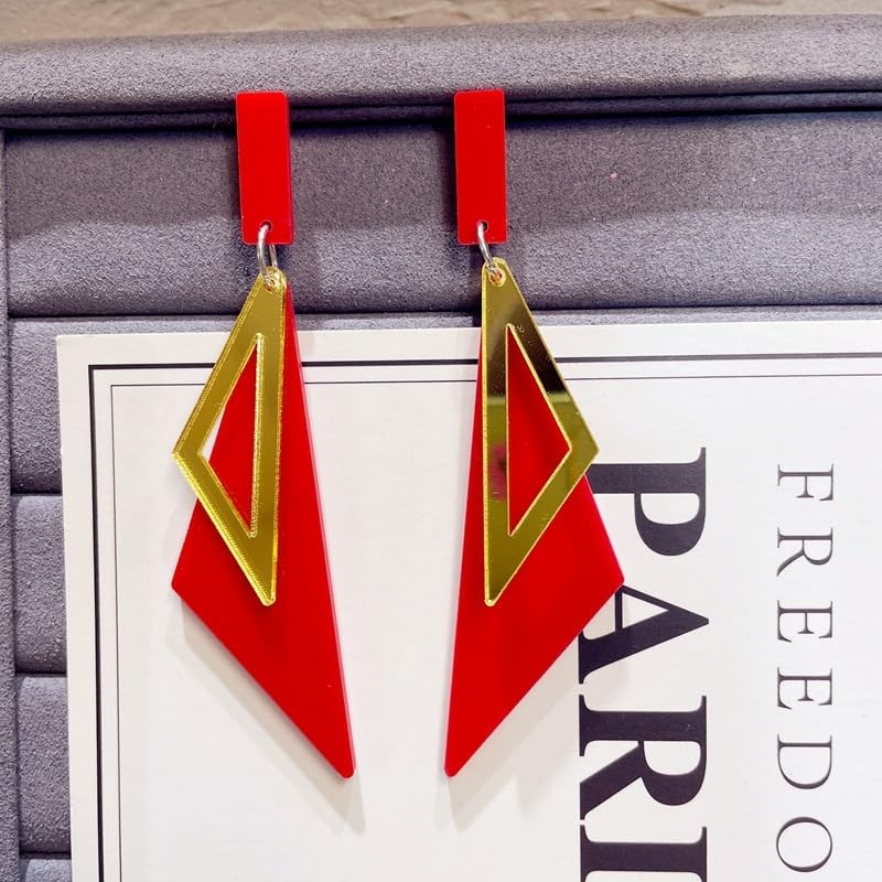 Retro Acrylic Geometric Double Triangle Long Dangle Drop Earrings Creative Exaggerated Fluorescent Geometric Statement Earrings for Women 80's Outfit Glow Party Jewelry Gifts (Red)