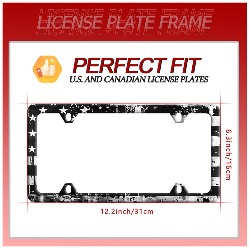 Retro Black Grey American Flag License Plate Frame Stainless Steel Patriotic USA Flag License Plate Frame Auto Parts Decoration with Screws Funny License Plate Holder for Men Women 12 x 6 Inch