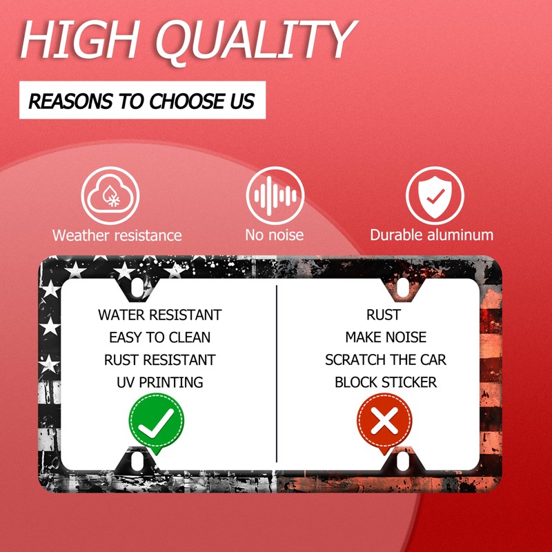 - Print Design :Advanced digital printing process to prevent corrosion . Whether it's a car wash, heavy rain or hot weather, it still looks brand new. makes your car better protect the license plate from deformation.Comes with screw , screw , stainless steel screw,you don’t need to buy any other hardware or fasteners. caps are also included